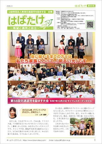 交通事故によって父親や母親を亡くした子どもたちを励ますために支援し、活動する東海交通遺児を励ます会の会報「はばたけ」最新号をお届けいたします。